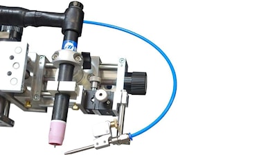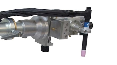 - Механизированная горелка TIG с жидкостным охлаждением для долговечности и стабильности сварочного процесса.